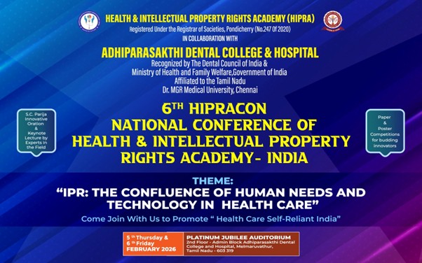6TH HIPRACON NATIONAL CONFERENCE OF HEALTH & INTELLECTUAL PROPERTY RIGHTS ACADEMY- INDIA Leave a Comment / 2026, News & Events / By Apdch 6TH HIPRACON NATIONAL CONFERENCE OF HEALTH & INTELLECTUAL PROPERTY RIGHTS ACADEMY- INDIA 5th & 6th Feb 2026